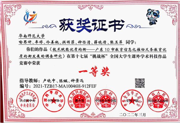 同时,团队还注重以赛促学,发挥毗邻港澳和教师教育优势,围绕粤港澳大湾区教师教育发展等主题,指导学生获得“挑战杯”全国大学生课外学术科技作品竞赛一等奖2项、二等奖1项,“互联网+”大学生创新大赛国赛银奖和铜奖,“挑战杯”广东省大学生课外学术科技作品竞赛特等奖4项、一等奖2项,“田家炳杯”全国师范院校师范生教学技能大赛国赛一等奖1项、二等奖3项,广东省本科高校师范生教学技能大赛奖项10余项,致力于培育具有创新精神和实践能力的教育人才。