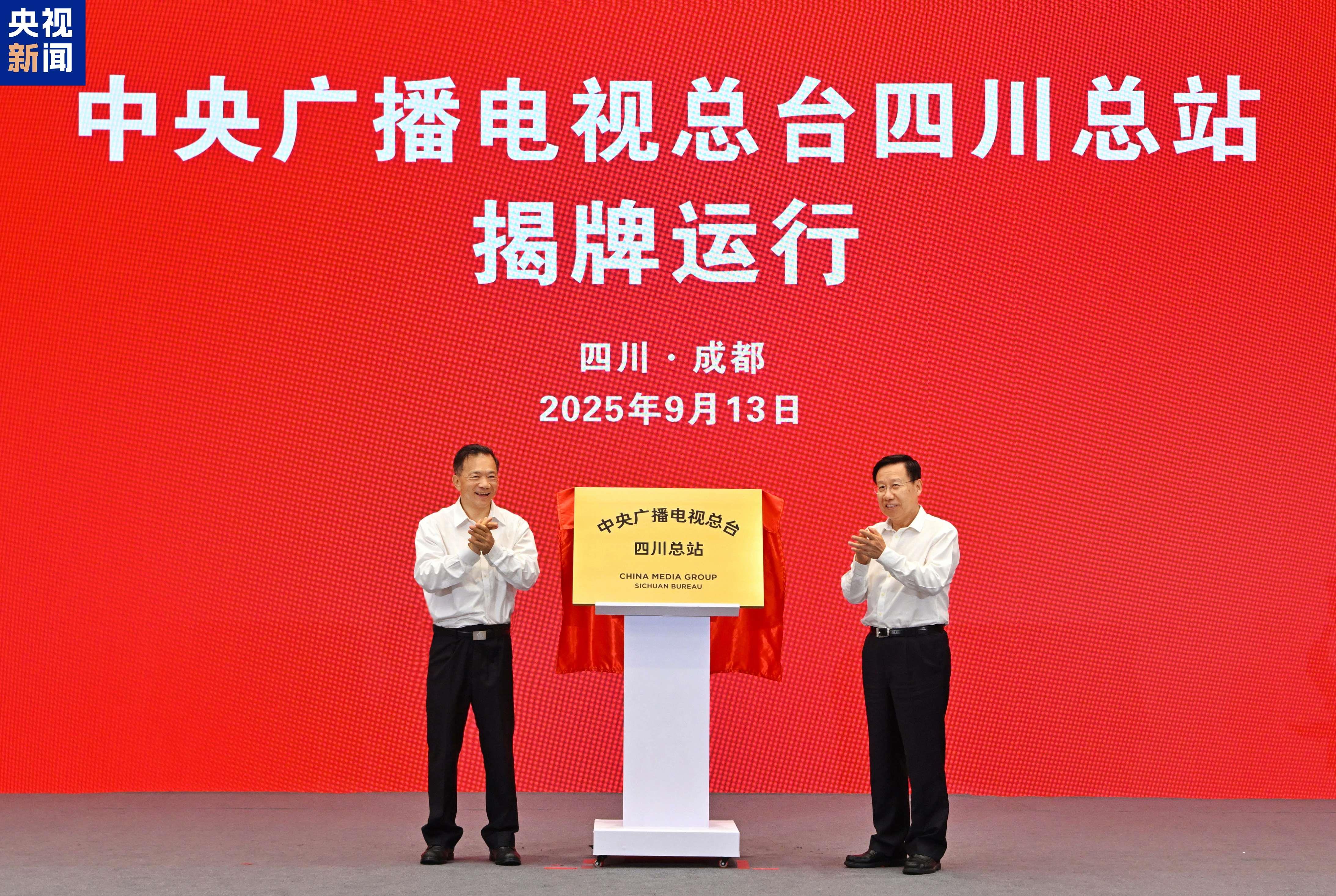 9月13日,中央广播电视总台四川总站揭牌运行暨总台系列项目启动活动在成都举行。四川省委书记、省人大常委会主任王晓晖与中宣部副部长、中央广播电视总台台长慎海雄出席并共同为总台四川总站运行揭牌。四川省委副书记、省长施小琳出席活动。