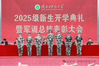 9月24日上午,陕西中医药大学在田径场召开2025级新生开学典礼暨军训总结表彰大会。校党委书记蒲济生,党委副书记、校长杨晓航,党委副书记苏晓波、巨旺民、杨景锋,副校长缪峰及中国人民93897部队领导出席会议。大会由苏晓波主持。